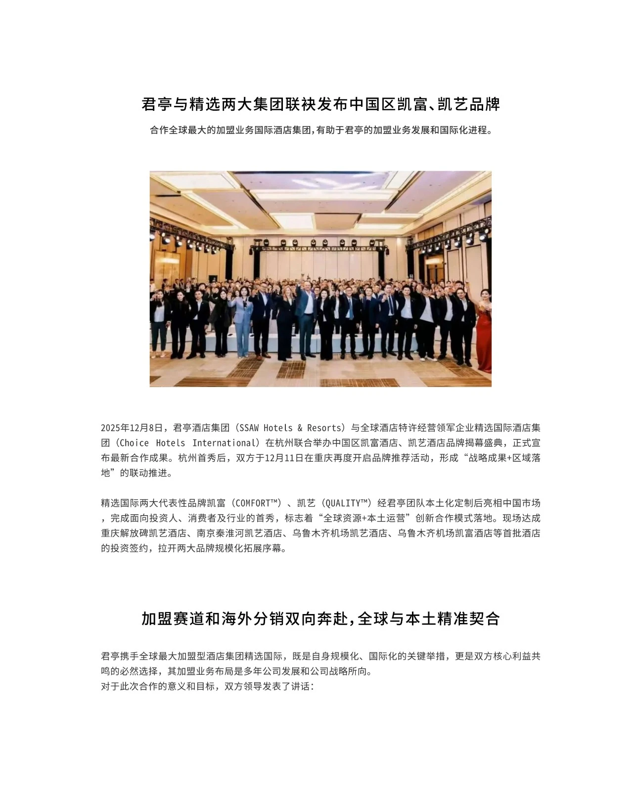 君亭与精选两大集团联袂发布中国区凯富、凯艺品牌