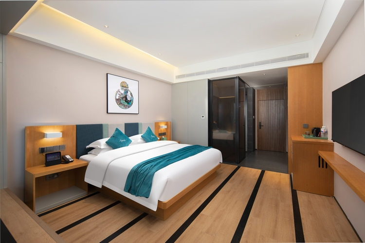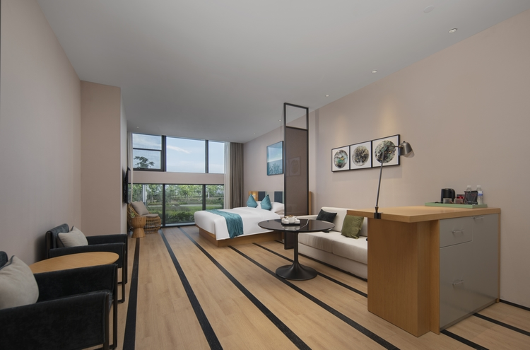 酒店拥有各类客房177间(套),面积从38㎡-80㎡不等,简约时尚的设计、温馨舒适的氛围、和IoT智能客控,是繁华都市的匠心隐居。依窗而立,远眺蓝天大海、珠山秀景,又或漫步大学城,独享这份属于自己的安宁与惬意。